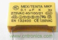 C1: 降壓電容,利用較大的容抗限制電路總電流。常用聚酯電容(CL21)、聚丙烯電容(CBB21)、安規(guī)電容(X2) ,容值依負(fù)載需求而定,此電容容量越大電路越不安全,在設(shè)計此電路時,如果220VAC供電情況下容量超過2.5uF,110VAC供電情況下容量超過4uF就因該放棄阻容降壓考慮其它電路。此處選用0.56uF安規(guī)電容(X2),提供19mA電流。