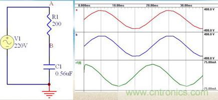 電容器實(shí)際上起到一個限制電流和動態(tài)分配電容器和負(fù)載兩端電壓的角色。