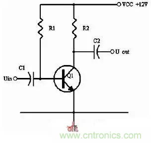 同理,當(dāng)輸入信號減小時,則Ib減小,Ic電流減小,則電阻R2的電壓U2=Ic×R2會隨之減小,Uce=VCC-U2,會變大。在輸入信減小時,Uce最大變化是從1/2的VCC變化到VCC。這樣,在輸入信號一定范圍內(nèi)發(fā)生正負變化時,Uce以1/2VCC為準(zhǔn)的話就有一個對稱的正負變化范圍,所以一般圖1靜態(tài)工作點的設(shè)置為Uce接近于電源電壓的一半。