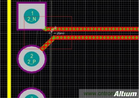 在PCB規(guī)則定義中,比如要對一塊特定的區(qū)域采用不同的規(guī)則,那么Room是解決這類問題的首選。首先用Room框出這一塊特定區(qū)域并命名為Room1。然后在規(guī)則定義里選擇WithinRoom(''Room1'') ,之后可以為這個(gè)Room里的對象設(shè)置各種規(guī)則。比如下圖所示,線寬規(guī)則全部違反了最小線寬設(shè)定值,所以都有綠色高亮顯示。然后為右邊的區(qū)域框選了Room1,分別為其設(shè)置了較寬的線寬值10mil,那么Room里的線寬符合規(guī)則定義,已經(jīng)顯示正常,沒有綠色高亮違規(guī)顯示了。但同一根網(wǎng)絡(luò)的導(dǎo)線中,Room之外的仍然綠色高亮顯示違規(guī)。這就是Room單獨(dú)設(shè)置規(guī)則的作用。
