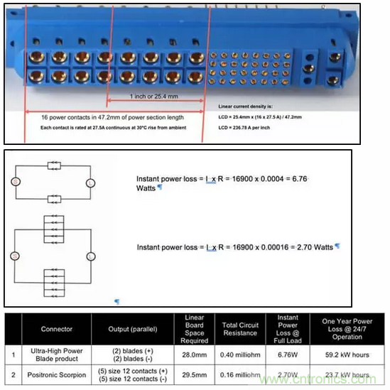與安費諾的PwrBladeULTRA®連接器系統(tǒng)相比,Positronic的Scorpion SP系列連接器是一種機械接觸式電源連接器,單位效率從1,560W提高0.26%。在連續(xù)一年,每周7天,每天24小時運行的情況下,Scorpion連接器可節(jié)省35.5度電,相當于節(jié)省了3美元以上。因此,從運營的第三年開始,僅節(jié)省能源成本就會超過Scorpion連接器的全部成本。