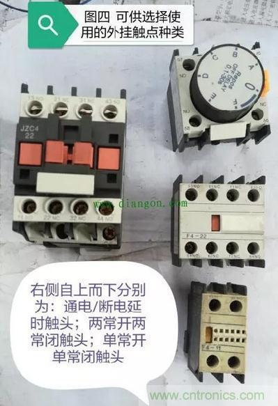 再來(lái)看由于該型繼電器只有兩對(duì)常開觸點(diǎn)和兩對(duì)常閉觸點(diǎn),一旦出現(xiàn)觸點(diǎn)不夠情況時(shí),難不成還要再安裝一只繼電器?其實(shí)在設(shè)計(jì)之初,這個(gè)問(wèn)題就已經(jīng)被考慮到。圖四就是該型繼電器所能加裝的“外掛”裝備: