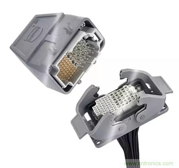 堅固的連接器和外殼保護插件免受污垢,潮濕和焊接火花,這在制造過程中相當普遍。 例如,Han® 24E的帶有籠式彈片連接的插芯正好適合于這種電流傳輸需求 通過此連接器,可以實現(xiàn)一個外殼內的24個觸點(額定電流:16A; 500V)的電力傳輸?;\式彈片連接在機器的組裝過程中很有益處,能提供非常高的抗振動穩(wěn)定性。