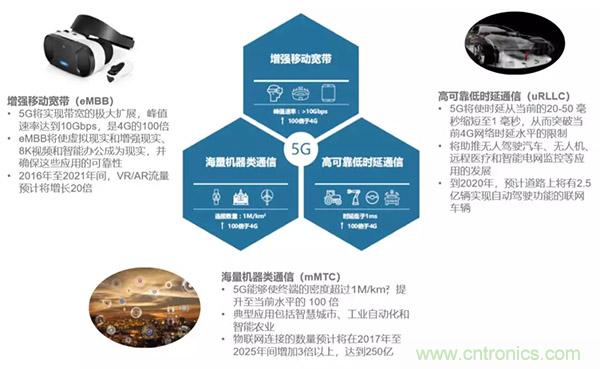 未來(lái)5G將應(yīng)用在增強(qiáng)移動(dòng)寬帶(eMBB)、高可靠低時(shí)延通信(uRLLC)、海量機(jī)器類(lèi)通信(mMTC)三大場(chǎng)景。而這需求的是非常寬的帶寬,非常高傳輸?shù)乃俾?,非??煽康牡脱訒r(shí)的連接,另外,還需要海量機(jī)器類(lèi)型連接的網(wǎng)絡(luò)。