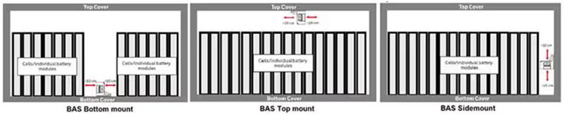 圖 2:可以將 BAS 傳感器安裝在電池組內(nèi)的任何位置。在任何情況下,都不能阻塞電池組的排氣閥。(圖片來源:Honeywell Sensing and Productivity)
