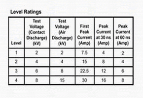 圖1:IEC61000-4-2規(guī)范指標(biāo)一覽表。