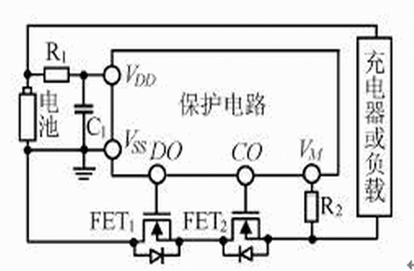 鋰離子電池保護(hù)電路為了實現(xiàn)其基本功能,首先需要檢測異?,F(xiàn)象。過充電和過放電檢測是將電池電壓進(jìn)行分壓(采樣)后與基準(zhǔn)電壓比較實現(xiàn)的;而對于過流檢測,保護(hù)芯片首先將充放電過程中的電流轉(zhuǎn)化為在功率管FET1、FET2上的電壓,然后通過VM與基準(zhǔn)電壓比較完成,放電過流檢測的是正電壓,充電過流檢測的是負(fù)電壓。