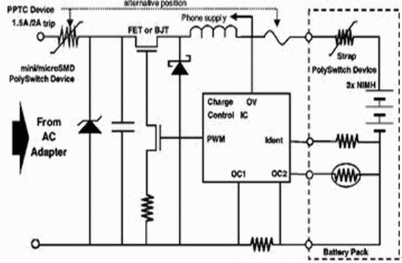 便攜式電子設備,例如蜂窩電話、PDA和手提電腦的電源都有特殊的過流保護要求。這些設備一般是通過AC/DC電源適配器供(充)電,將市電或未經(jīng)穩(wěn)壓的直流電轉(zhuǎn)變?yōu)楹线m的低壓直流電。由于越來越多的人開始在零配件市場上購買電源適配器以及通用充電器,將不兼容或有故障的電源適配器應用于便攜式設備的可能性也就大大增加。由于電源適配器的電壓、極性以及電流都可能與該設備的電路規(guī)范不相吻合,從而將會導致?lián)p壞甚至帶來安全隱患。