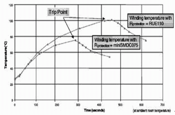 - PPTC元件非常適合在過熱故障時提供有效保護