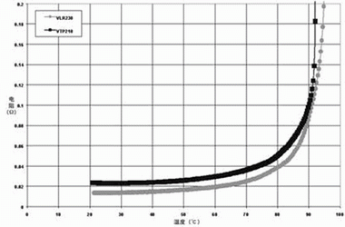 為了降低TtT,溫度公式的(熱出)部分必須減至最小。這必須使用小型組件及降低溫度轉(zhuǎn)換系數(shù)來實(shí)現(xiàn)。針對VTP和VLR組件每個(gè)外型,雖然VLR組件阻抗比VTP組件要低,但其能在故障電流到達(dá)額定電流時(shí),提供短路保護(hù)功能。