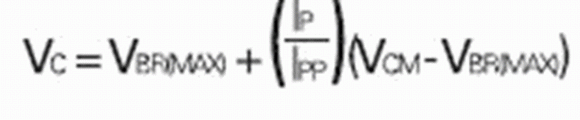 假設二極管的電壓是VBR(MAX)(最壞情形中的導電開端)和VCM(對應于最大電流IPPM的箝位電壓)之間電流的線性函數(shù),并且VBR(MAX)位置的電流相對于IPPM可忽略不計,則中等電流時箝位電壓的保守估算值為
