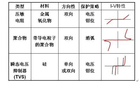 安森美半導體來自美國的ESD保護專家Robert Ashton博士說,一般而言,ESD保護元件的分類可以通過其保護策略與方向性來進行,主要包括壓敏電阻、聚合物和瞬態(tài)電壓抑 制器(TVS)等,如表1所示。在這幾種保護元件中,壓敏電阻在低電壓時,呈現出高電阻,其中的每個小型二極管兩端的電壓都相當低,同時電流也相當??;而在較高電壓時,其中的獨立二極管開始導通,同時壓敏電阻的電阻會下降。從表1中我們也可以看出壓敏電阻為雙向保護元件。而對于帶導電粒子的聚合物而言,在正常電壓下,這些材料擁有相當高的電阻,但當發(fā)生ESD沖擊時,導電粒子間的小間隙會成為突波音隙陣列,從而帶來低電阻路徑。
