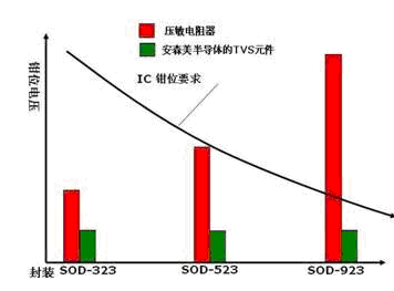 圖6:多層壓敏電阻(MLV) 與安森美半導體的TVS硅芯片技術發(fā)展趨勢對比