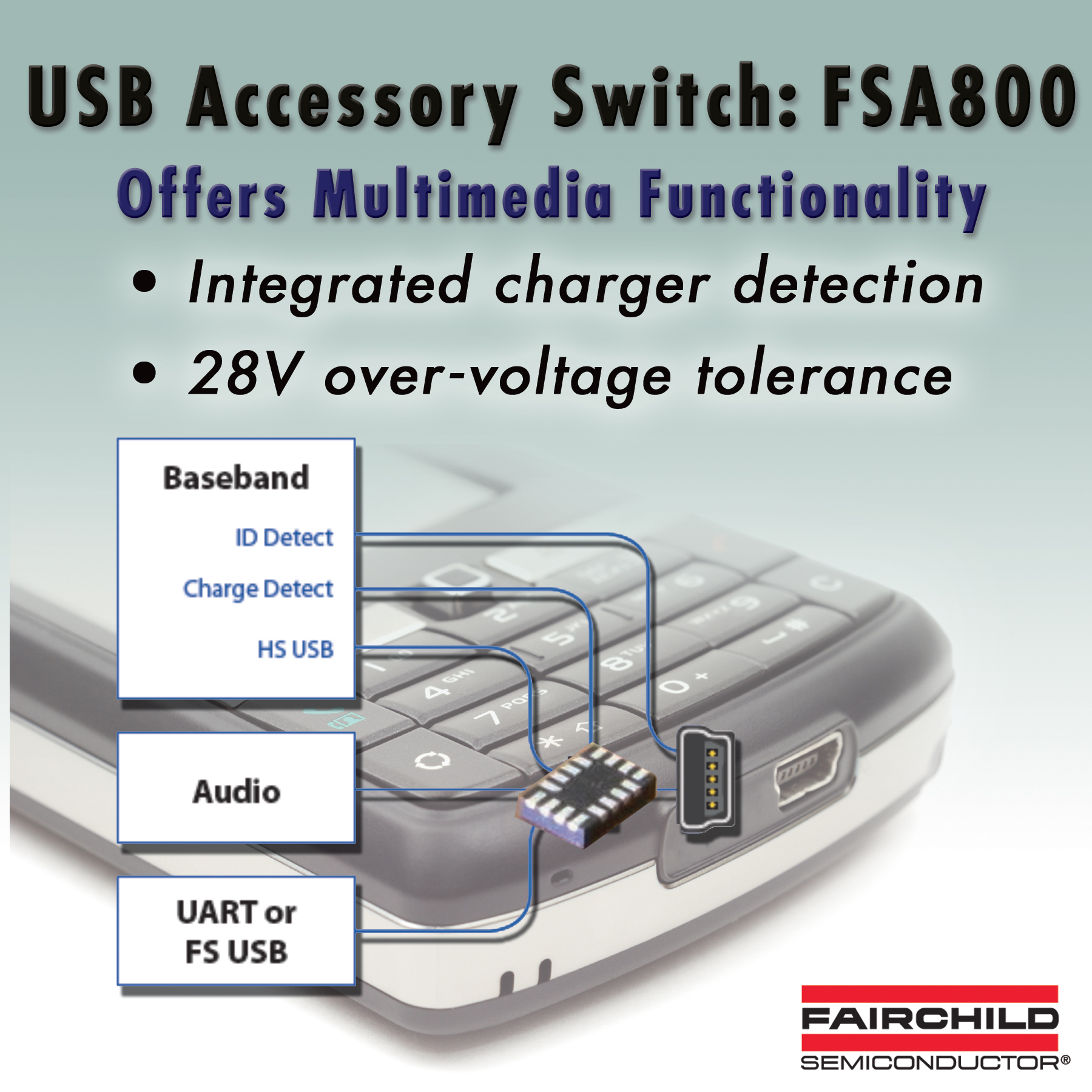 FSA800是飛兆半導體全面的USB解決方案的一部分,這些開關(guān)產(chǎn)品適用于USB端口隔離,連接器分享和信號多路復用。它們通常用于USB端口的分享和路由,以及隔離閃存/ uDisk可移動裝置。這些開關(guān)產(chǎn)品的設(shè)計符合USB2.0全速(FS)和高速(HS)規(guī)范,帶寬超過720MHz。