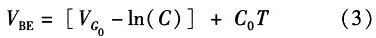 如果忽略由溫度變化引起lnT項(xiàng)變化對(duì)式(2)的影響,dVBE/dT可近似等于常數(shù)C0。常溫下C0約為-2 mV/K。為了簡(jiǎn)化計(jì)算,則PN結(jié)關(guān)于溫度的變化方程可近似線性為
