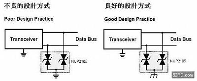 (圖二) 將TVS元件連接到機箱或電源接地點有助于避免噪音信號耦合到受保護晶片的信號接地。