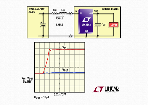 凌力爾特公司 (Linear Technology Corporation) 推出 2.5V 至 5.5V 過壓和過流保護器 LTC4362,該器件為保護低壓、便攜式電子產(chǎn)品免受電壓瞬態(tài)和電流浪涌的損害而設(shè)計。電源適配器失效或故障,或者將一個 AC 適配器帶電插入設(shè)備的電源輸入時,可能會發(fā)生過壓。無意間將錯誤的電源適配器插入設(shè)備可能會因過壓或負(fù)電源電壓而引起損壞。LTC4362 運用準(zhǔn)確度為 2% 的 5.8V 過壓門限檢測過壓事件,并在 1us (最大值) 時間內(nèi)快速響應(yīng),以隔離下游組件和輸入。高達(dá) 28V 的過壓保護由一個內(nèi)部雪崩額定的低 RDS(ON) MOSFET 實現(xiàn),而且在大多數(shù)應(yīng)用中無需瞬態(tài)電壓抑制器 (TVS) 或其它外部組件,就可承受電感電纜瞬態(tài)。此外,LTC4362 監(jiān)視一個內(nèi)部電流檢測電阻器兩端的壓降,以提供準(zhǔn)確度為 20% 的 1.5A 過流門限。LTC4362 目標(biāo)是具有多個電源選項的便攜式電子產(chǎn)品,如通過交流和汽車電池適配器以及USB端口充電的蜂窩電話、MP3/MP4 播放器、數(shù)碼相機等。