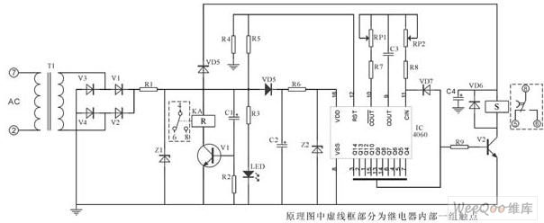 該電路的缺點是延時參數(shù)不易于設(shè)定,通常要對RP2調(diào)整(控制C4放電回路)、RP1調(diào)整(確定V2柵極電壓),并對C4、C3電容容量參數(shù)進行計算,再加上器件的離散性使延時誤差較大,調(diào)整也不方便,現(xiàn)在基本上很少使用。