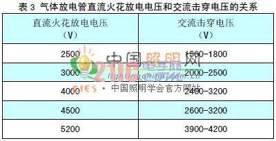 為了使LED路燈能夠滿足安全要求,氣體放電管的耐壓選擇至關(guān)重要,應該選取足夠耐壓的氣體放電管與壓敏電阻配套,壓敏電阻和氣體放電管串聯(lián)電路(如圖1)應能夠承受基本絕緣的耐壓。幾種氣體放電管的直流火花放電電壓和交流擊穿電壓的關(guān)系見表3,氣體放電管的直流火花放電電壓一般應選不低于2500V。