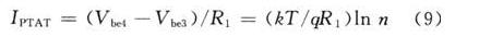 由式(9)可知,流經(jīng)R1的電流與電源無(wú)關(guān),只與絕對(duì)溫度成正比,即得到PTAT電流。