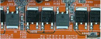 一般主板燒壞,維修人員最先檢查的都是Mosfet。質(zhì)量不好的Mosfet在長(zhǎng)時(shí)間使用的時(shí)候,會(huì)非常燙手,甚至有燒毀的可能。所以,選購主板,觀察Mosfet這個(gè)環(huán)節(jié)上,最好考慮Philips,Infineon,IR的品牌,其次考慮Alpha,ST,ON這些品牌。如下圖所示: