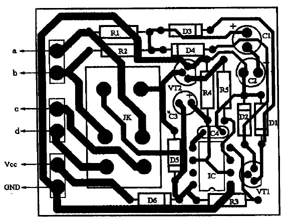 555一定要選用功耗很低的CMOS時(shí)基電路。VT1、VT2用9014、C1815型小功率塑封晶體管,要求電流放大倍數(shù)β>100.D1~D5均用1N4148型硅開關(guān)二極管,D6用于電源接反保護(hù),可選用1N4001~1N4007型硅整流二極管。R1~R5均用0.5 W五色環(huán)金屬膜電阻。C1、C2用優(yōu)質(zhì)鋁電解電容,C3要選用漏電小、精度高的鉭電解電容,否則將影響延時(shí)精度。JK選用12 V/7 A雙聯(lián)型繼電器(左、右聲道各用一組),如JZC-22F.