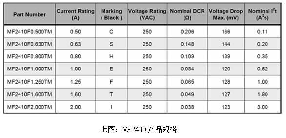 * MF2410 貼片保險(xiǎn)絲可減少PCB占用面積