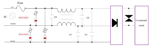 一般依據(jù)客戶產(chǎn)品防雷測試等級的要求進行選取,來決定所選放電管的通流量及相應(yīng)的尺寸規(guī)格。