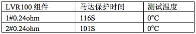 選取兩片 Rmin 電阻 0.22ohm 的 LVR100 和功率電阻集成的組件,下面表 1 為馬達(dá)的保護(hù)時間。