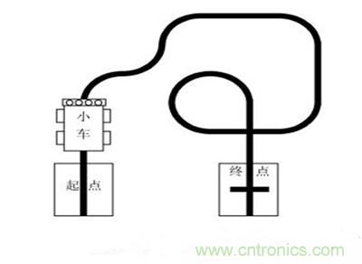 所謂小車循跡,就是在白紙上畫出黑色的線條,稱為賽道;小車沿著賽道按要求(可以做一些指定的任務(wù))行進(jìn)時(shí),能自動(dòng)識(shí)別賽道并按賽道線條行走,稱為小車循跡。如圖1所示,該賽道是2010年全國(guó)職業(yè)院校大學(xué)生職業(yè)技能競(jìng)賽月球車競(jìng)賽項(xiàng)目湖南賽區(qū)賽道圖。