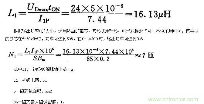 (1)即使輸入電壓最大,主開關(guān)器件導(dǎo)通時(shí)間最長,也不至于使變壓器的磁芯飽和;