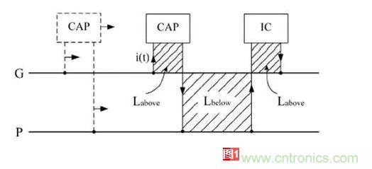 在這里引入兩個概念:Labove 、Lbelow (電容和IC下面的電流回路大小不一定一樣,但在這里分析的時候,假定大小等同)