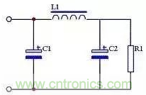 使用兩個電容和一個電阻組成RC濾波電路,又稱π型RC濾波電路。見圖20所示。這種濾波電路由于增加了一個電阻R1,使交流紋波都分擔在R1上。R1和C2越大濾波效果越好,但R1過大又會造成壓降過大,減小了輸出電壓。一般R1應遠小于R2。