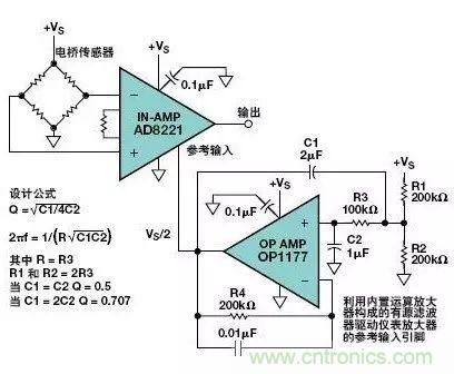 圖11.將運(yùn)算放大器緩沖器接成有源濾波器驅(qū)動儀表放大器的參考輸入引腳