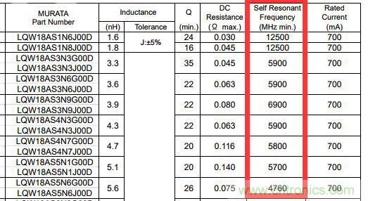 C0G/NP0類的低損耗電容和高Q值RF繞線電感datasheet中一般都會主動標(biāo)出自諧振頻率的具體值和測試方法。簡單地說,電容在低于自諧振頻率的區(qū)間內(nèi)才有作為容性元件的利用價值,電感在自諧振頻率內(nèi)才有作為電感的利用價值。