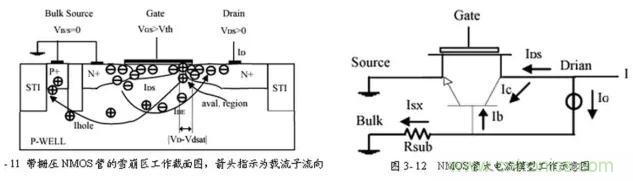 1)NMOS我們通常都能看到比較好的Snap-back特性,但是實際上PMOS很難有snap-back特性,而且PMOS耐ESD的特性普遍比NMOS好,這個道理同HCI效應(yīng),主要是因為NMOS擊穿時候產(chǎn)生的是電子,遷移率很大,所以Isub很大容易使得Bulk/Source正向?qū)?,但是PMOS就難咯。
