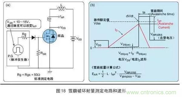 額定EAR的真實意義在于標定了器件所能承受的反復雪崩擊穿能量。該定義的前提條件是:不對頻率做任何限制,從而器件不會過熱,這對于任何可能發(fā)生雪崩擊穿的器件都是現實的。在驗證器件設計的過程中,最好可以測量處于工作狀態(tài)的器件或者熱沉的溫度,來觀察MOSFET器件是否存在過熱情況,特別是對于可能發(fā)生雪崩擊穿的器件。