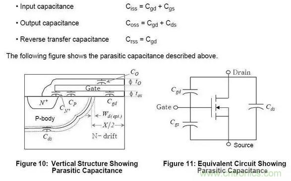 將柵源短接,用交流信號測得的漏極和源極之間的電容就是輸出電容。Coss是由漏源電容Cds和柵漏電容Cgd并聯(lián)而成,或者Coss = Cds +Cgd對于軟開關的應用,Coss非常重要,因為它可能引起電路的諧振。