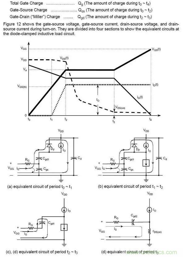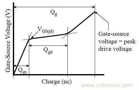 Qgs從0電荷開始到第一個拐點處,Qgd是從第一個拐點到第二個拐點之間部分(也叫做“米勒”電荷),Qg是從0點到VGS等于一個特定的驅動電壓的部分。