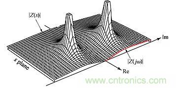 如果我們繪制|Z(s)|相對于s的幅度曲線,則可以直觀理解零點和極點的含義。所得到的曲線就好像在s平面上豎起的帳篷,在零點處接觸s平面,而在極點處其高度變?yōu)闊o限。