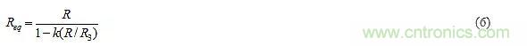 其中R2代表電位器在其左端和游標之間的部分。對于給定的元件值,從左端到右端改變游標將使k在0<k<2的范圍內變化?,F在,R3上的電壓為(1+k)vn–vn,即kvn,在右邊是正的,表明R3將為C提供電流kvn/R3。鑒于R從C中汲取電流vn/R,因此從C流出的凈電流為iC=vn[1/R+1/(-R3/k)],表明C視R與一個負電阻–R3/k并聯,凈等效電阻Req=R||(–R3/k)]。擴展后可以得到: