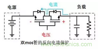 與MOS管一樣,負(fù)載開關(guān)可在關(guān)閉時阻止兩個方向上的電流(如下圖設(shè)計)。