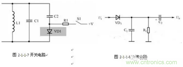 圖所示是二極管檢波電路。電路中的VD1是檢波二極管,C1是高頻濾波電容,R1是檢波電路的負(fù)載電阻,C2是耦合電容。圖2-1-1-8。