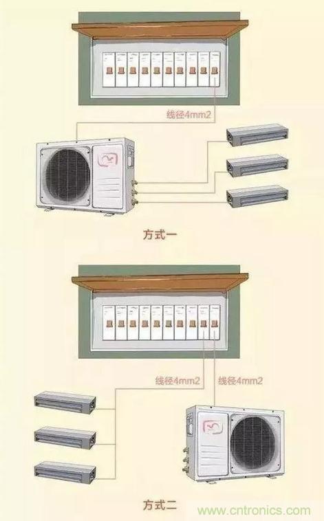 家裝中的空調(diào)一般都是單獨(dú)的線路,因?yàn)榭照{(diào)功率經(jīng)常不穩(wěn)定,容易出現(xiàn)超載的可能,因此每個(gè)可調(diào)都配有一個(gè)回路。