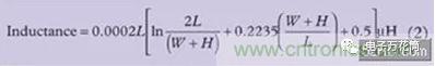 帶狀電感是另外一種需要考慮的寄生效應(yīng),它是由于印制線過長(zhǎng)或缺乏接地平面引起的。(公式二)顯示出計(jì)算印制線電感(Inductance)的公式。可參考(圖六)。