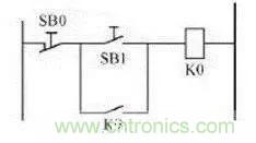 I/O分配SB0-X0,SB1-X1,輸出K0-Y0。當(dāng)外部使用長閉觸點,不操作該按鈕,輸出Y0正常接通,在PLC控制系統(tǒng)中,外部開關(guān)無論是啟動還是停止一般都選用常開型。