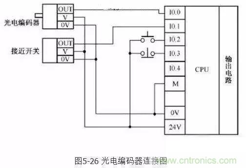 直流有源輸入輸入信號一般都是24V,這類信號與其他無源開關(guān)量信號混合接入PLC輸入點時電壓的0V點一定要接。上圖輸入點I0.0,I0.1連接光電編碼器,接近開關(guān)的輸出OUT信號,它們的驅(qū)動電源由PLC自身的24V電壓提供
