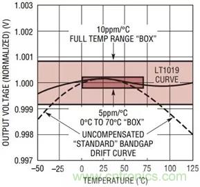 例如,指定為100ppm/°C的基準(zhǔn)電壓源傾向于在任何溫度范圍內(nèi)都有相當(dāng)好的線性度,因為元件不匹配引起的漂移完全掩蓋了其固有非線性。相反,指定為5ppm/°C的基準(zhǔn)電壓源,其溫度漂移將以非線性為主。