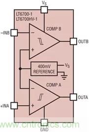 圖7:LT6700 支持與低至 400mV 的閾值進行比較