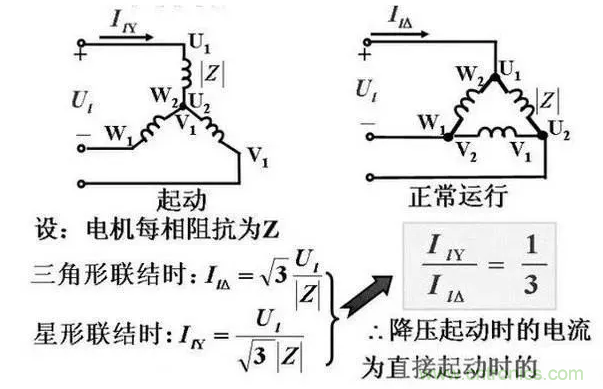 做星三角啟動的電機有兩個重要的特性:星型啟動電流和啟動轉(zhuǎn)矩均變成額定電流的三分之一。